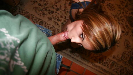 Very attractive american Rosalie Ruiz sucking deep on dick and gets a cum blast on face