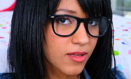 Very attractive american teen Tess Morgan in fancy skirt spreads hairy pussy