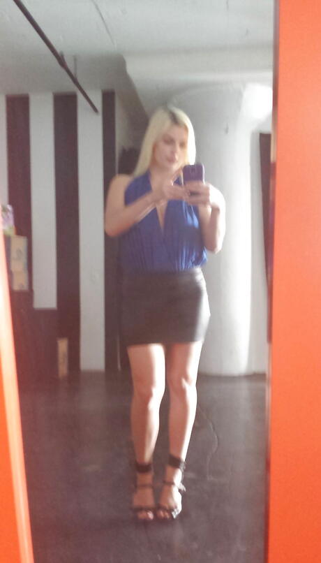 Very attractive babe Danielle Delaunay in fancy skirt baring big boobs and sexy ass