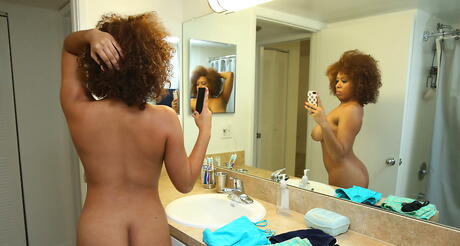Very attractive black milf Katt Garcia denudes big knockers and sexy ass in shower
