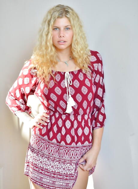 Very attractive blonde teen Addison Belgium reveals her butt in shorts and playing with sex toy
