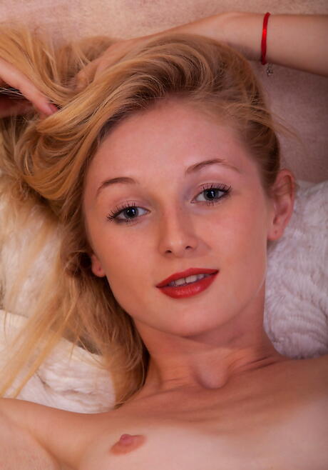 Very attractive blonde teen Leona Honey in panties in foot fetish show