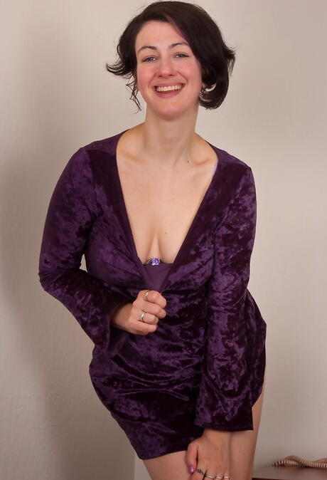 Very attractive brunette Sadie Lune in sexy lingery exhibiting big titties and hairy pussy