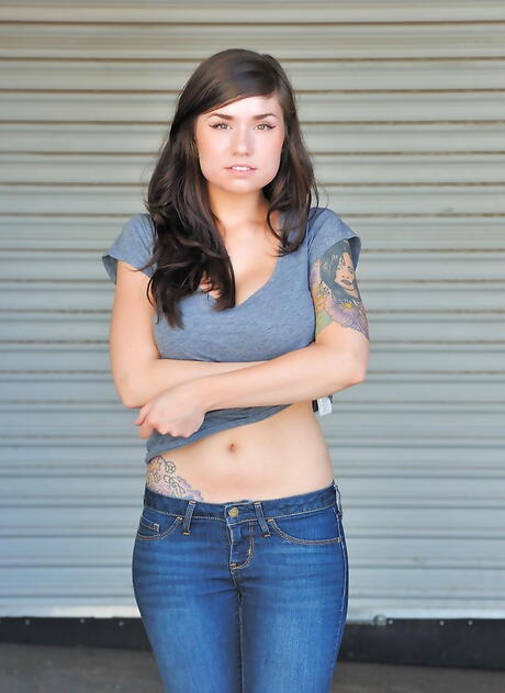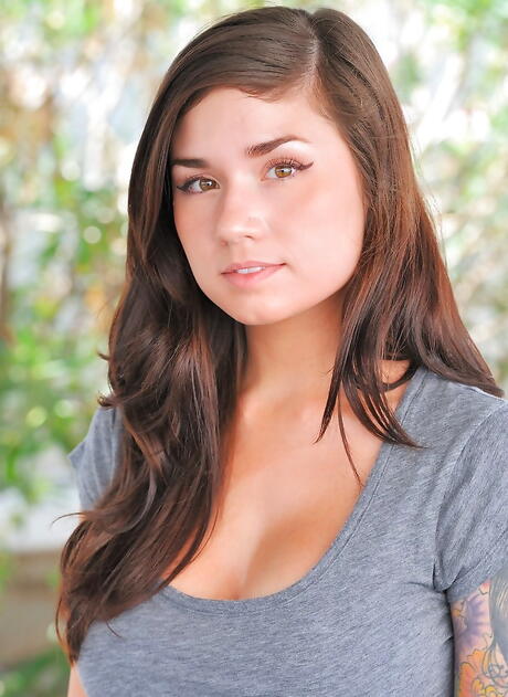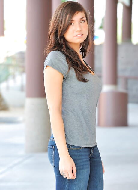 Very attractive brunette teen Ellia Suicide baring big hooters and spreading her legs outdoor