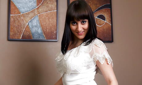 Very attractive brunette teen Selena Sin in hot lingerie showing big hooters and nice pussy