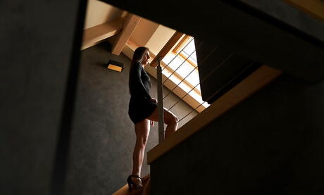 Very attractive dark-haired Angela Allison banged hard in her bald pussy after good blowjob