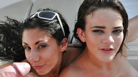 Very attractive girls Daniela Diamond and Tristan Berrimore enjoy amazing group sex outdoor