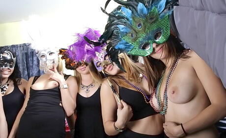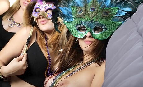 Very attractive girls Sofia and Mila Castro showing big tits on the night party