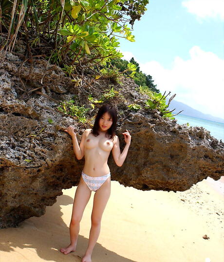 Very attractive japanese youthful Maiko revealing big titties and sexy ass at beach