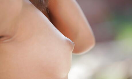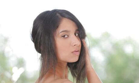 Very attractive latin dark-haired teen Ria Rodrigez bares her butt and masturbates outside