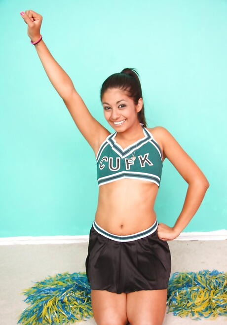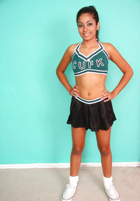 Very attractive latina teen Ruby Rayes in skirt baring small tits and pussy