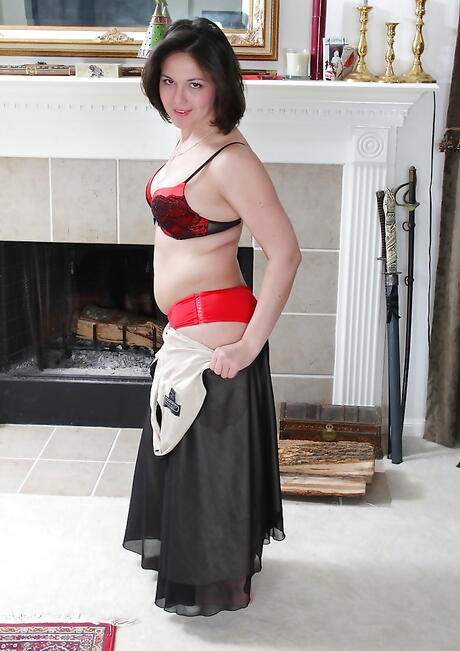 Very attractive mature Penny Prite in hot undies exhibits tiny tits and spreads her legs