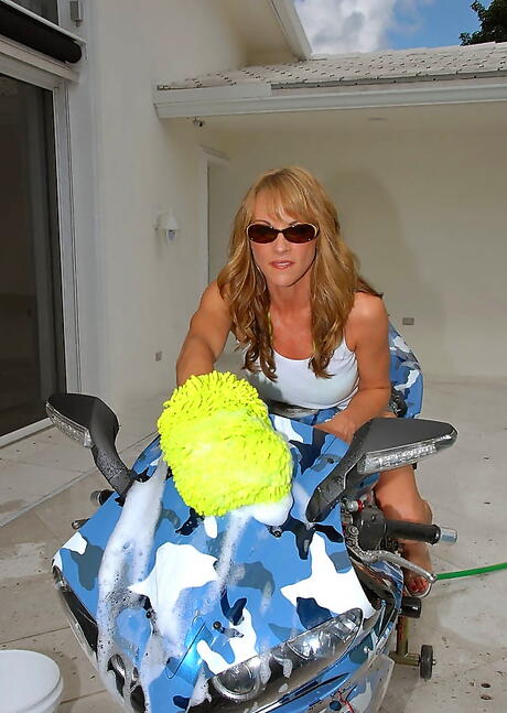 Very attractive milf Shayla baring big titties and spreading her legs outside