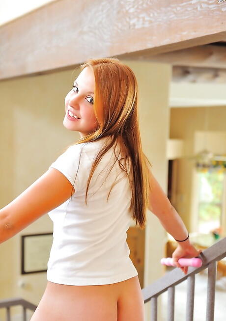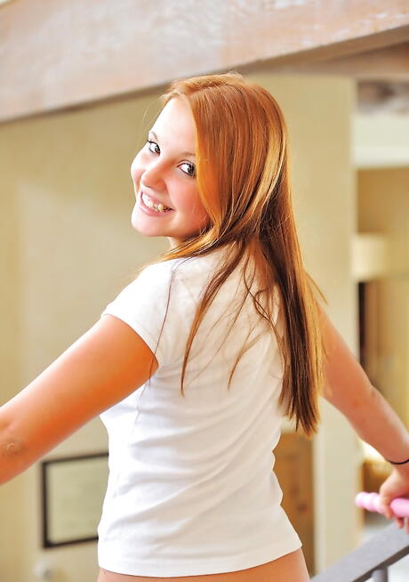 Very attractive red-haired youthful Jacky makes some foot fetish action