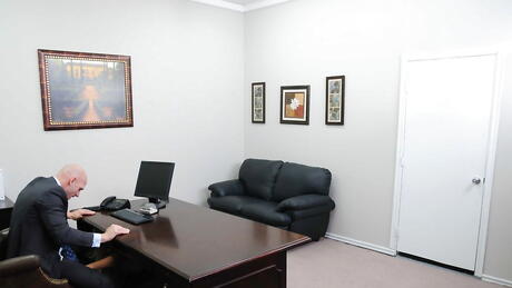Very attractive spanish Bridgette B in sexy skirt fucked in her shaved pussy after good blowjob in office