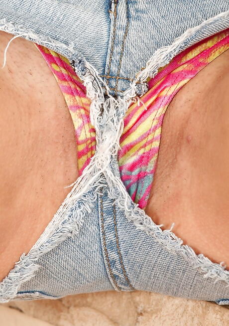 Very attractive teen Rio Petite in fancy shorts loves foot fetish