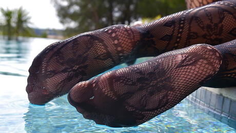 Very attractive women Lucy Li and Tracy Lindsay in sexy pantyhose licking pink pussies in the hot lesbian sex outdoor
