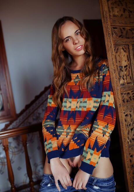 Very attractive young Anna Netrebko in tight jeans exhibiting tiny tits and hairy pussy