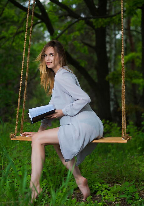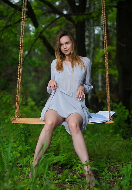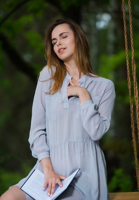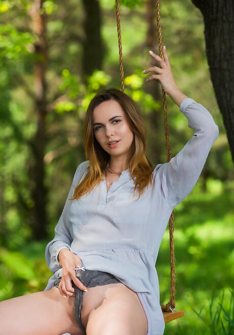 Very attractive youthful Nasita in hot panties baring her ass and cute pussy outdoor