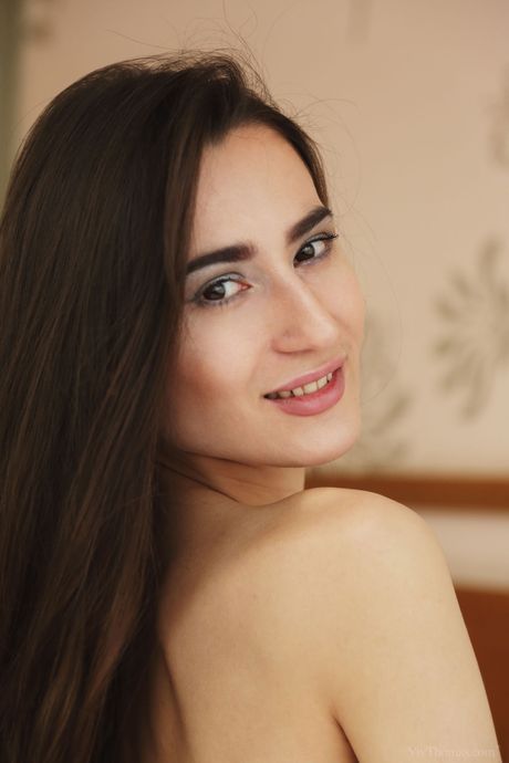 Adorable teen Sofia Lia removes her lingerie to pose nude in her bedroom