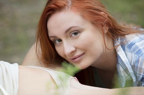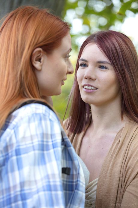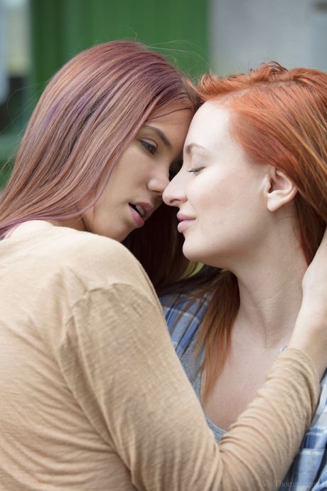 Amazing lesbians Eva Berger & Lovenia Lux kiss before licking pussies outdoors