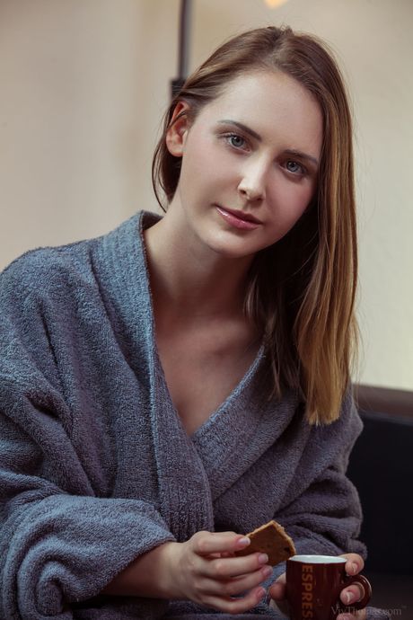 Attractive teen Odena strips & teases with her big tits & her delicious pussy