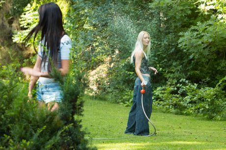 Hot girls Uma and Frida take turns licking pussies after a kiss in the garden