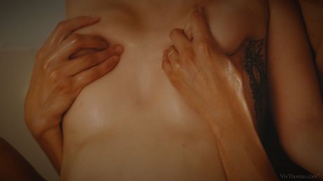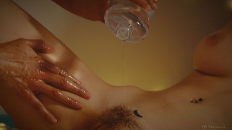 Hot lesbians Cassie Del Isla & Caomei Bala rub oil into each others bodies