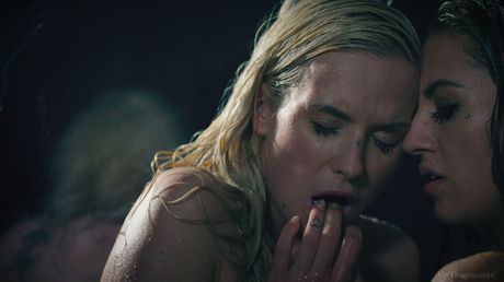Hot lesbians Silvia Dellai & Cristal Caitlin kiss before masturbating in a shower