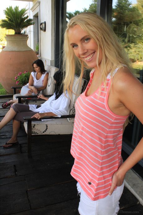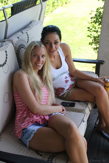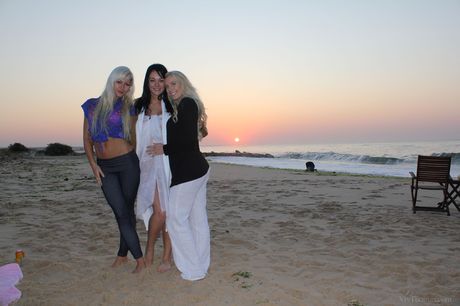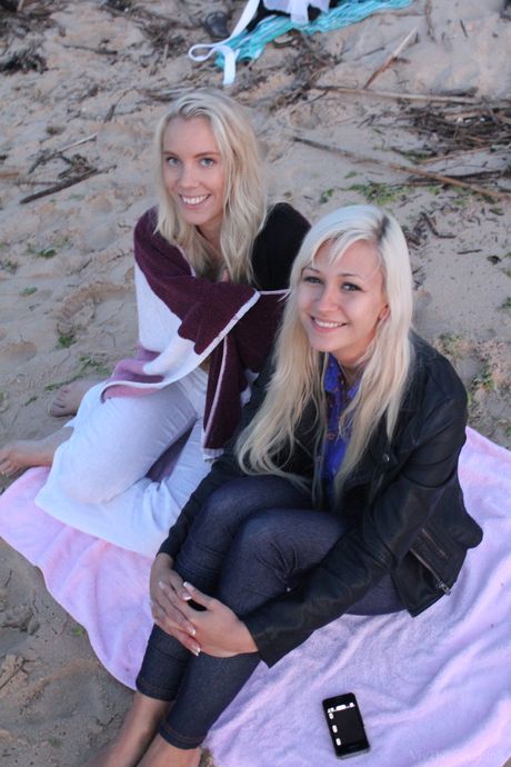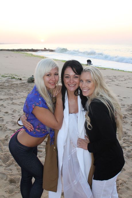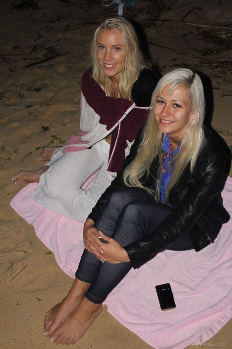 Hot teen lesbians Nicole Smith & Taylor Shay doff jeans to pose nude on beach