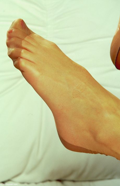 Hungarian teen Nikita B strips off her stockings and poses naked