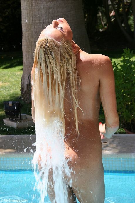 Hungarian teen Sophie Moon strips and masturbates her pussy by the pool