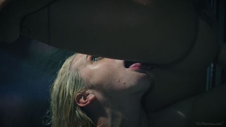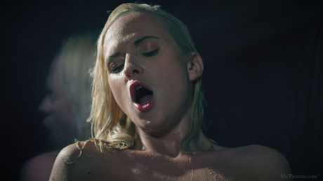 Lesbian girls Cristal Caitlin & Silvia Dellai have sex on a bed in the shower
