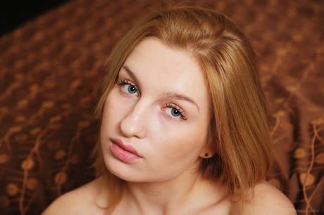 Sexy blonde teen Amie B takes it all off on a stool with conviction