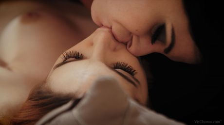 Sexy lesbians Inna Innaki & Amarna Miller use a strapon cock during sex