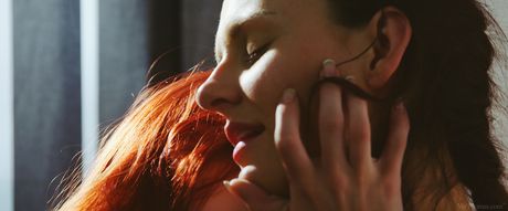 Teen lesbians Kira Zen & Leila Smith kiss before licking pussies on a bed