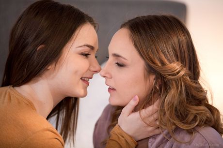 Teen lesbians Ophelia Dust & Purr Simona kiss after pleasuring hairy pussies