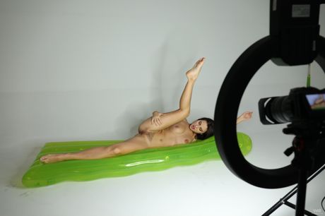Amazing girl Aliana removes her bikini to model naked in her bare feet