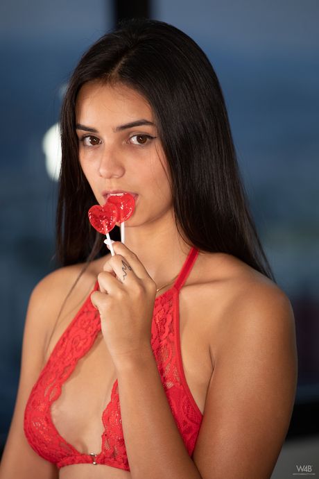 Colombian teen Sarah Joy removes her lingerie and plays with her pussy