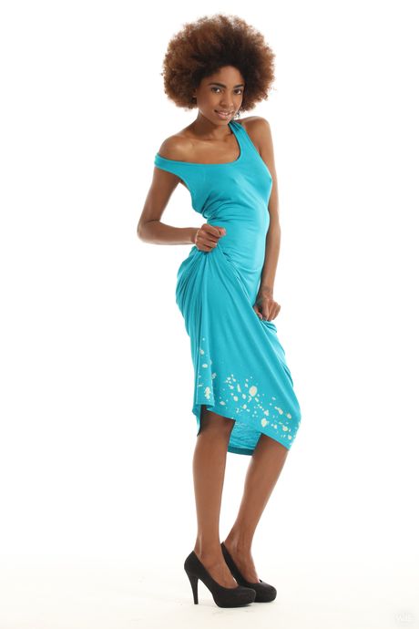 Ebony teen Luna Corazon shows her shaved pussy and tight ass in the nude