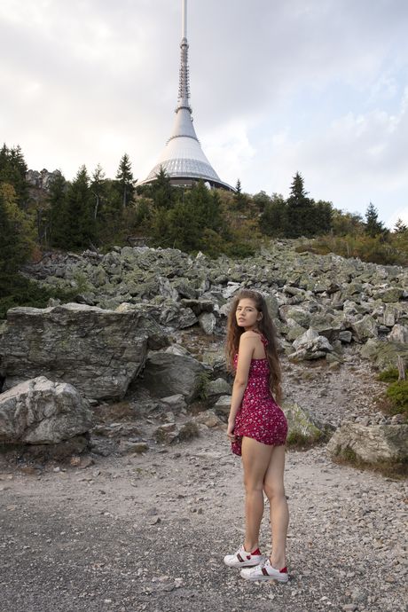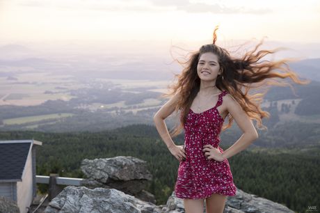 Glamorous Latina Irene Rouse posing in her sexy outfits outdoors