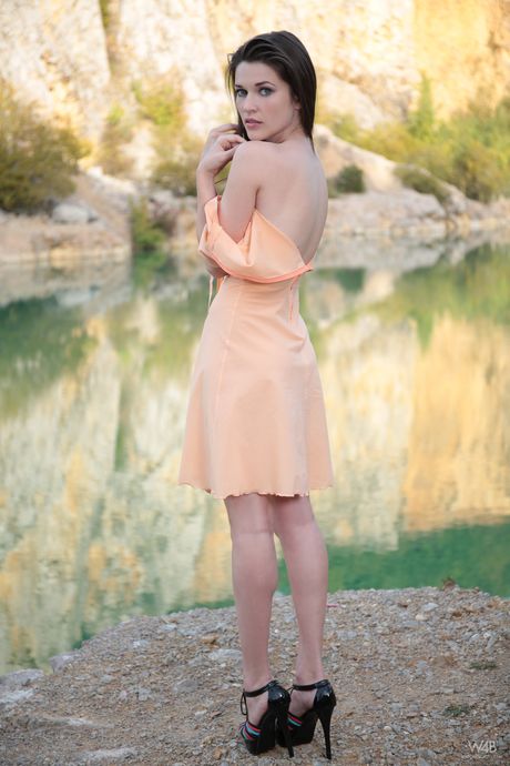 Glamorous teen Serena shows off her shaved pussy & her perfect tits outdoors