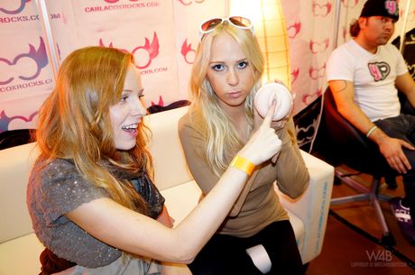 Glamorous teens Carla Cox & Carmen Kees pose naked at the Sex Expo