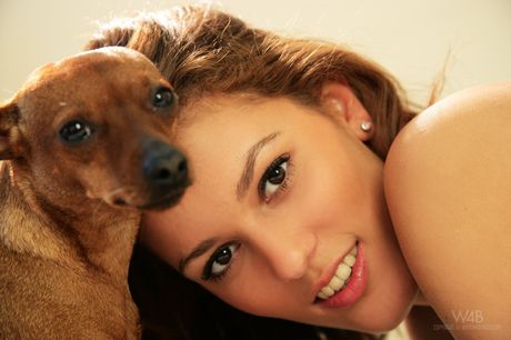Hot lesbians Becca & Florencia toying with a dildo in the sauna