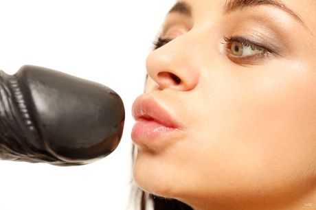 Lean teen Inga toys her pussy with a dildo after getting naked