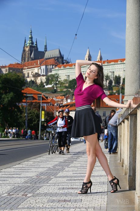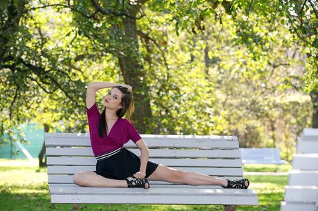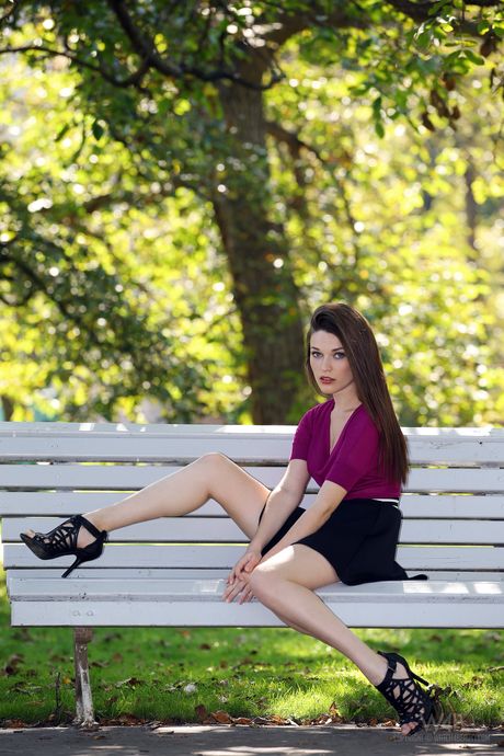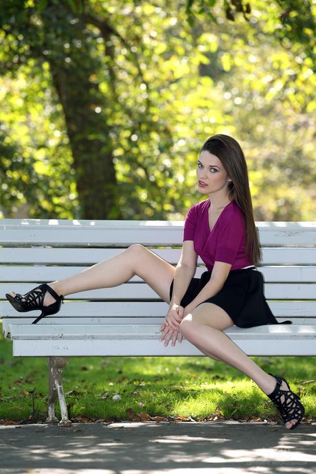 Long legged teen Serena flashes her tits and ass in a park
