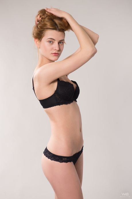 Redheaded teen Ada shows her natural tits and poses in a solo