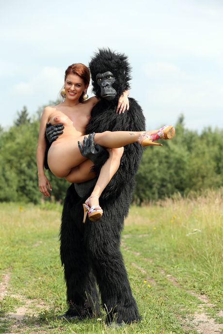 Redheaded teen Becca exhibits perfect shape in high heels on a rocky outcropping