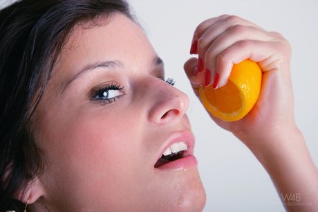 Sexy brunette Ines shows off her big tits and spreads her pussy