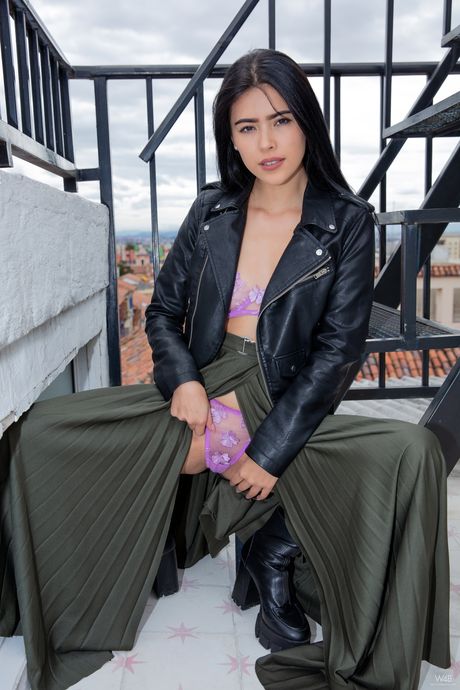 Skinny Latina teen Paolina shows her small tits and shaved vagina in a solo